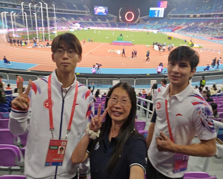 The Four-Yearly 15th National Games High Jump Event was held at the Guangzhou Olympic Sports Center. Ms. Kwok SM served as the on-site coach, providing immediate support and professional advice to the Hong Kong high jump representatives. One of the athletes was our school's alumnus, Cheung Ming Hung, who performed exceptionally well, achieving an outstanding height of 2.05m. After the competition, Cheung Ming Hung also took time to speak with the media, sharing his experiences and feelings from the event.