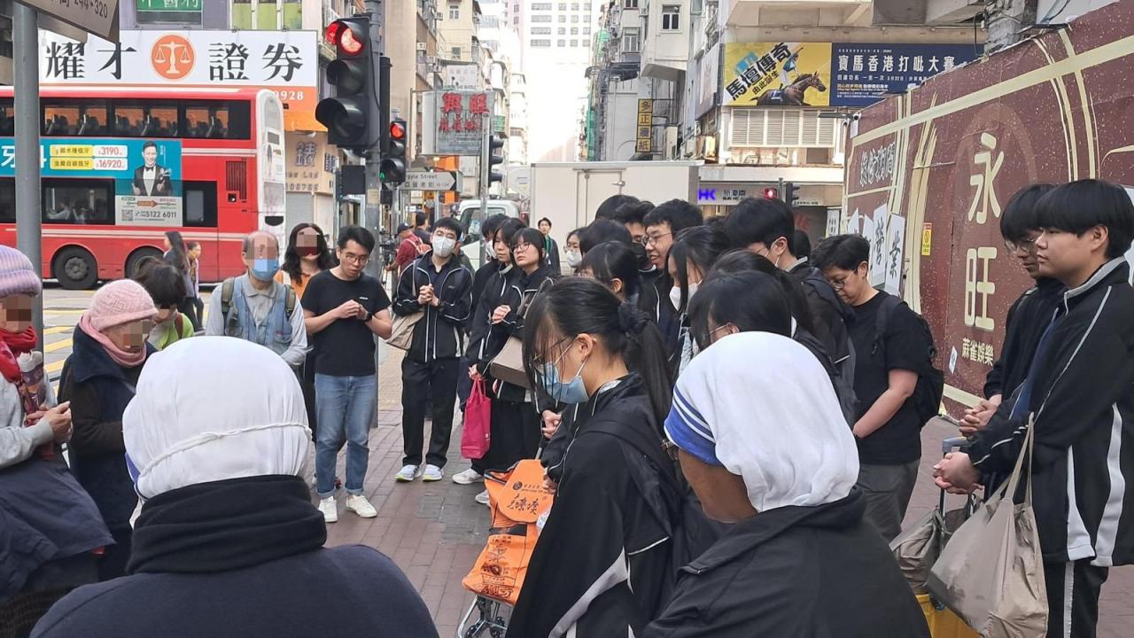 On 9 March 2026, 19 S.3 and S.5 students took part in the social service co-organised by the school’s Extra-curricular Activities Committee and the Missionaries of Charity. They visited the homeless in Yau Tsim Mong District, distributed food to them and chatted with them.