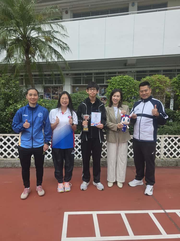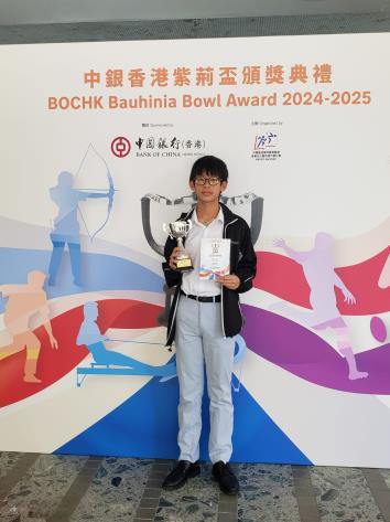 The Schools Sports Federation of Hong Kong, China held the Outstanding Athlete Award Ceremony for the 2024-2025 academic year during the summer vacation. 3A Lee Cheuk Yin was honored with the Rising Star Award for his outstanding performance in the inter-school athletics competitions. His awards include a certificate, a trophy, and a scholarship of one thousand dollars.