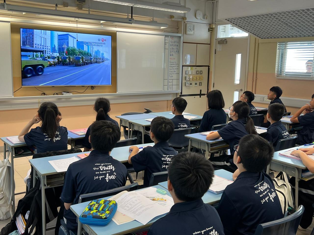 為紀念中國人民抗日戰爭暨世界反法西斯戰爭勝利80周年,本校於早會舉行升國旗儀式、奏唱國歌,以及紀念抗戰的「國旗下的講話」;亦於9月3日當天全校師生一起觀看閱兵儀式,其後學生亦積極參與相關的問答比賽。