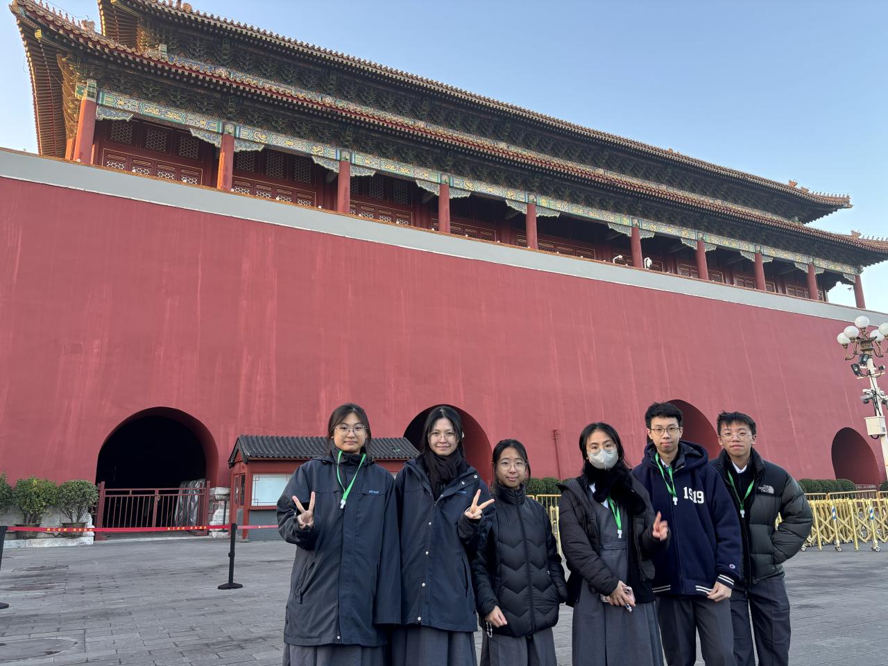 本校同學有幸獲得香港新一代文化協會邀請,於2025 年10 月29 日至11 月2 日參加第二屆香港中學生升旗隊代表訪京團。行程包括參觀北京語言大學校園,感受北語校園文化;觀摩北京語言大學升旗隊隊列演示,與升旗隊成員交流。考察居庸關長城。登上天安門廣場觀禮台,觀看升國旗儀式,拜訪國旗護衛隊,參觀營舍,觀看國家儀仗隊及軍樂隊演示。參觀中國人民抗日戰爭紀念館、中國共產黨歷史展覽館及中國非物質文化遺產館。行程十分難得,亦讓同學對國家有更深入的認識。