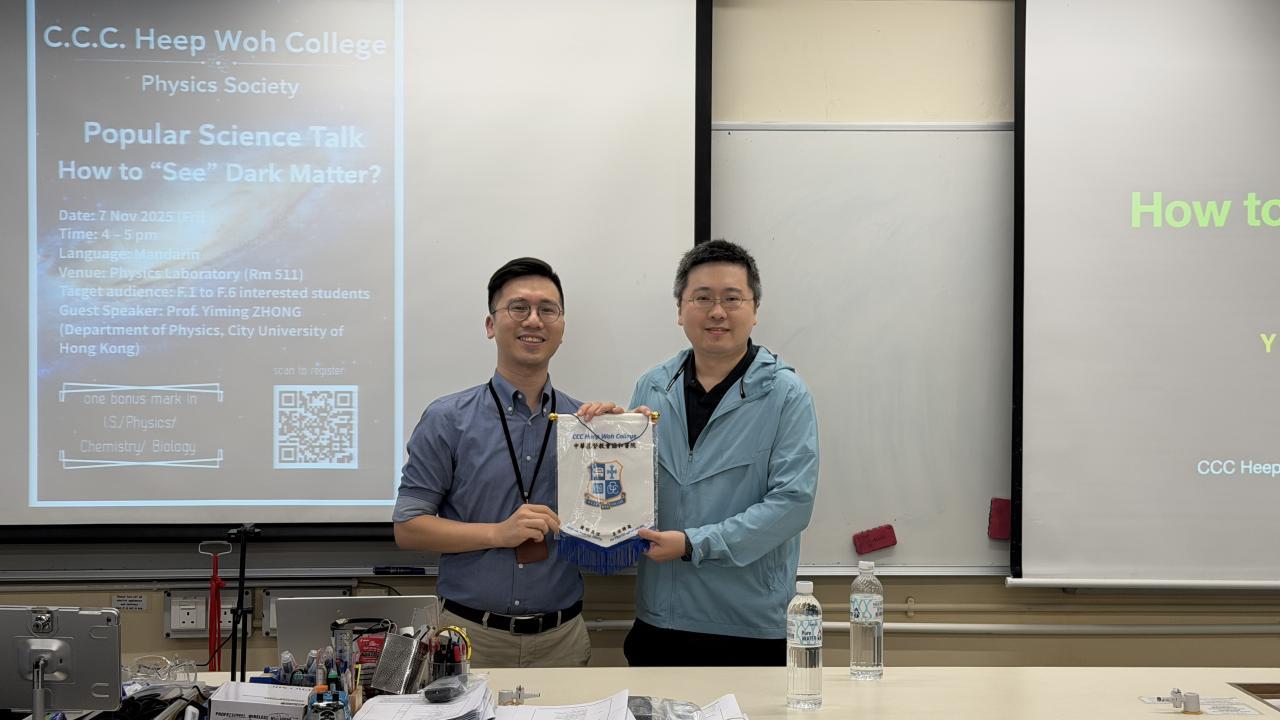 A highly successful science talk titled "How to see Dark Matter" was held in the Physics Laboratory. The event featured Professor Yiming Zhong from City University of Hong Kong as the guest speaker. The talk was met with significant interest, with fifty-eight students attending.