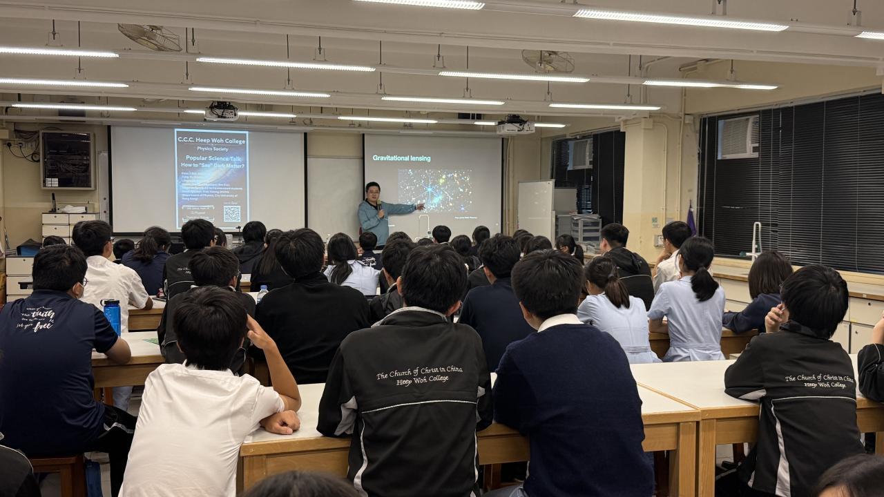 一場科學講座「如何看到暗物質」在物理實驗室舉行。是次活動邀請了香港城市大學的鍾益鳴教授擔任主講嘉賓。此次講座引起了師生的興趣,共有58位學生出席。