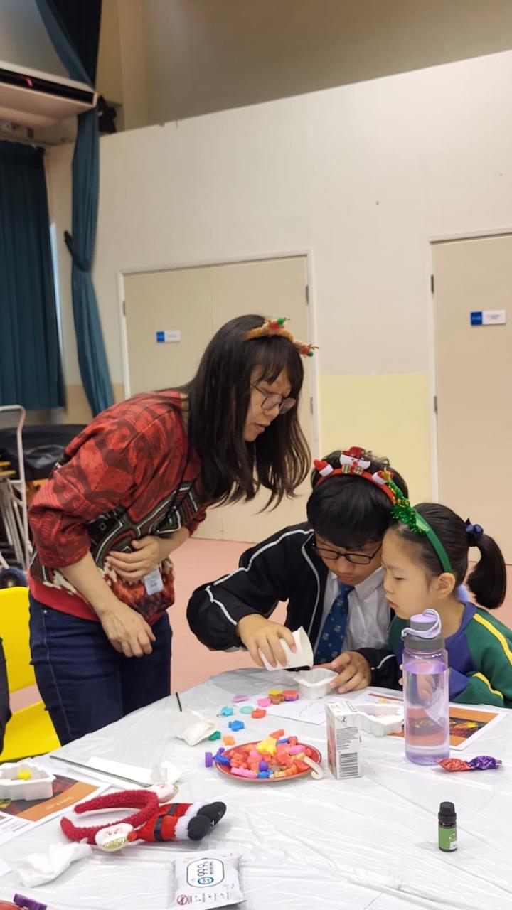 Parent ambassadors from the Jockey Club “Promoting Family Resilience” project and social workers from the Salvation Army held the Christmas Handmade Soap Workshop. They shared messages about family resilience and make handmade soap together.