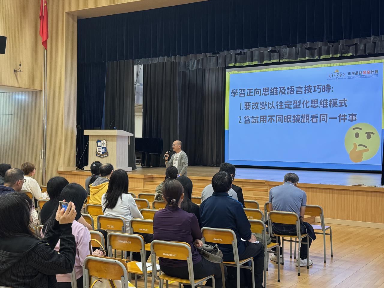 家長事務委員會於三月十四日舉辦「正向家庭講座(2):實踐正向家庭的溝通術」,由浸信會愛羣社會服務處社工向家長講解有關運用具體讚賞及建立成長性思維的方法。